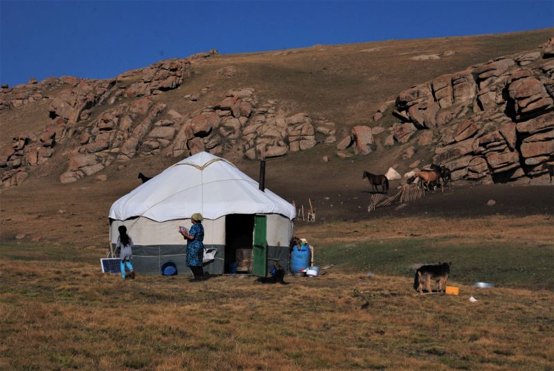 Dépose médicaments et cosmétiques chez des nomades Mongols
